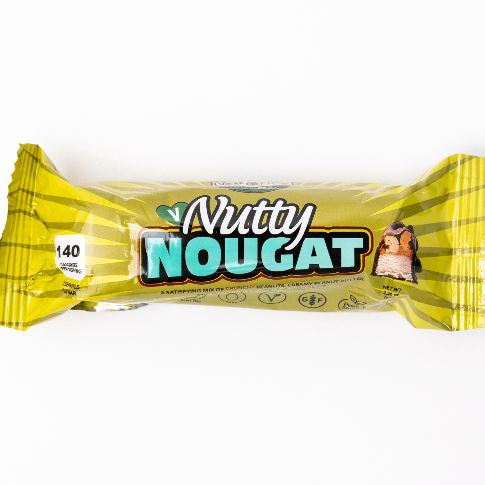 A satisfying mix of crunchy peanuts, creamy peanut butter, and nougat, all covered in chocolate. Sold individually!!! 100% Gluten Free! *PROCESSED ON EQUIPMENT THAT PROCESSES GLUTEN AND PECANS* *CHOCOLATE IS SOURCED FROM A MANUFACTURE THAT ALSO PROCESSES DAIRY*