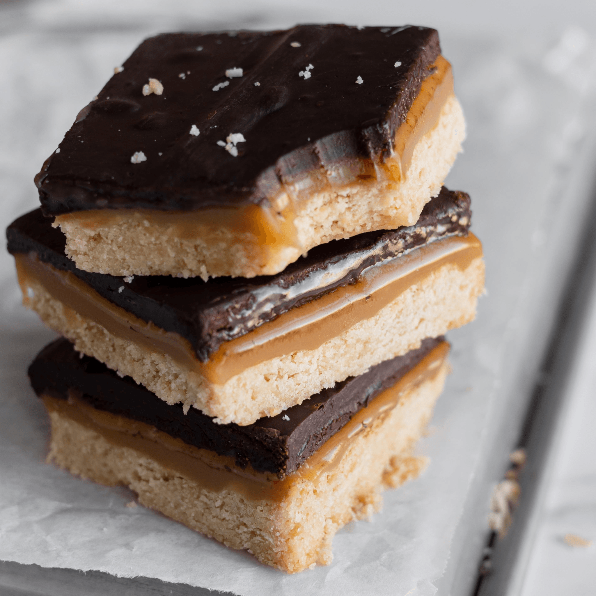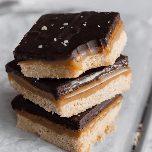 A buttery, tender gluten-free shortbread base layered with a thick ribbon of golden caramel and crowned in a smooth, glossy chocolate ganache. Rich, decadent, and unapologetically indulgent. Three luxe layers, one dangerously good bite.